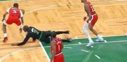 登哥第一下3分出手时,明显被格莱姆斯点到肘了